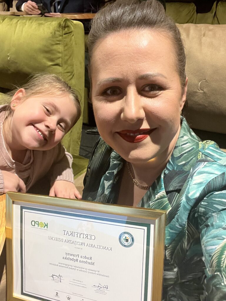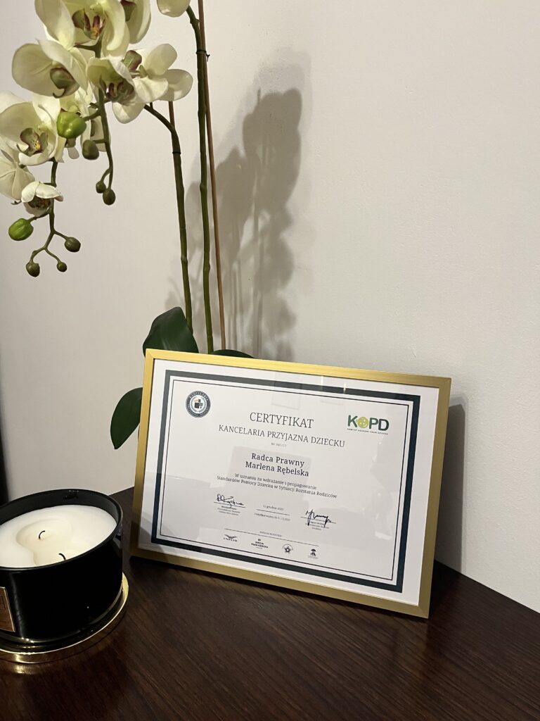 Z ogromną radością i dumą informuję, że ADVancer Kancelaria Radcy Prawnego Marlena Rębelska otrzymała prestiżowy certyfikat „Kancelaria Przyjazna Dzieciom” przyznawany przez Komitet Ochrony Praw Dziecka. To wyróżnienie jest dla nas niezwykle ważne, ponieważ potwierdza, że działamy zgodnie z najwyższymi standardami ochrony praw najmłodszych i tworzymy bezpieczną, przyjazną przestrzeń dla dzieci oraz ich rodzin.